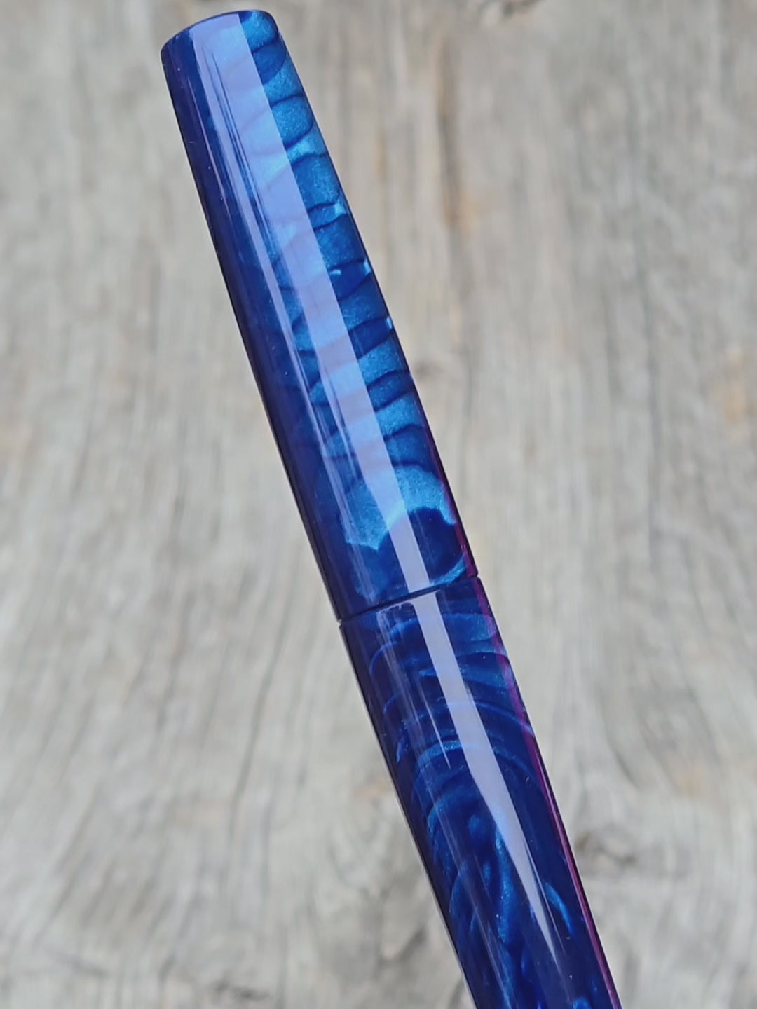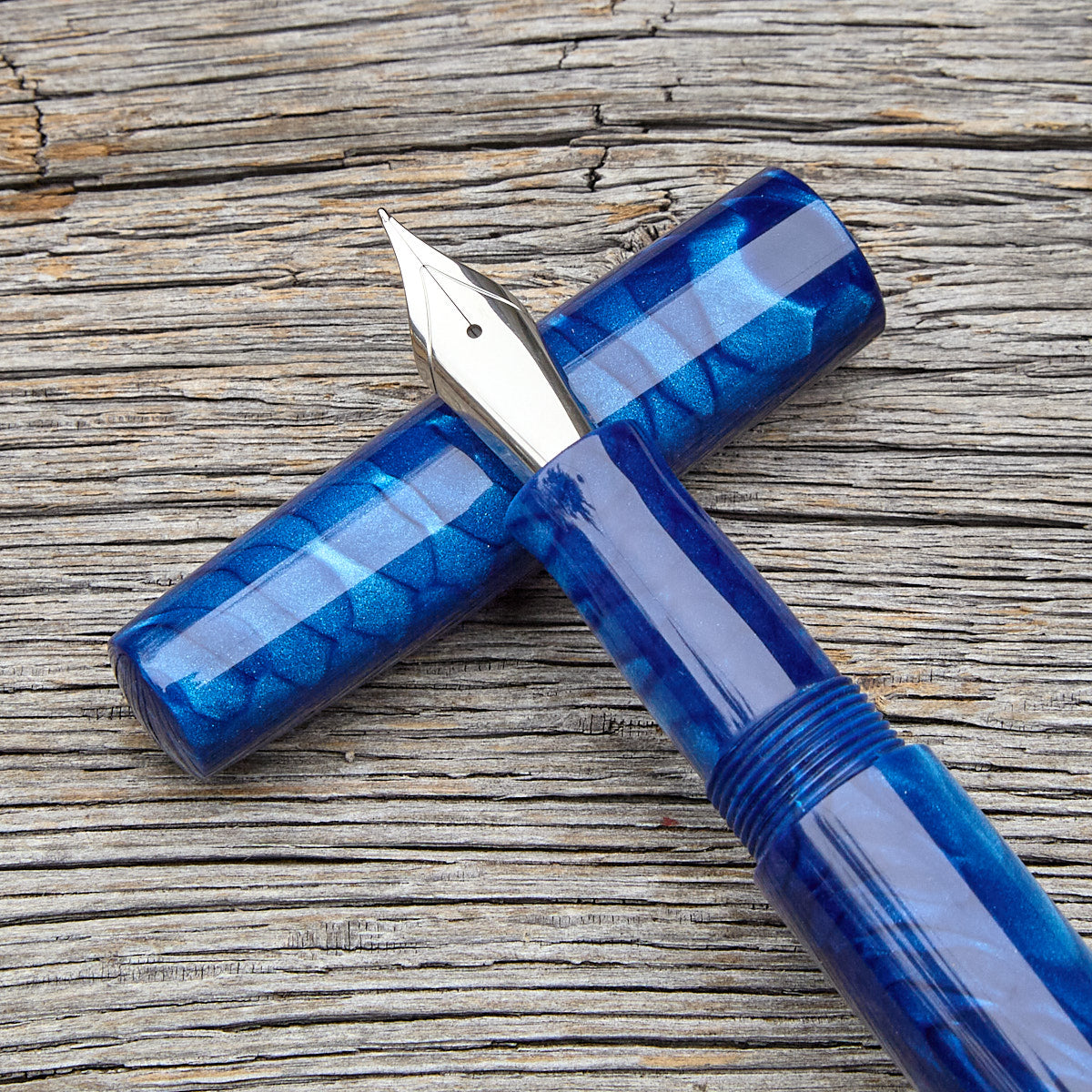This pen is made from Elforyn's "Blue Dragon" Juma resin, in a Junction L model.